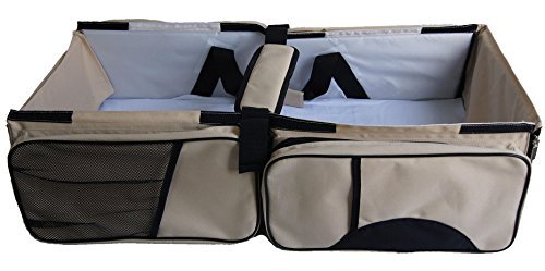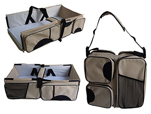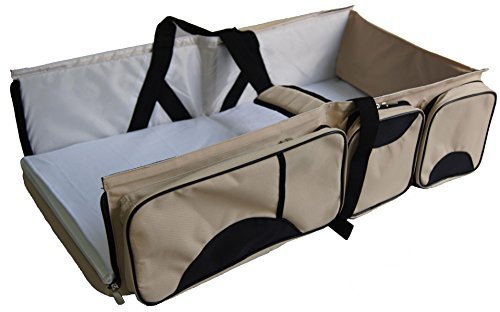 CHANGE TABLE AND DIAPER BAG : Unzip the end panels to make diaper changing easy on the go. 5 zip compartments for storing diapers, creams, wipes and other baby necessities with 1 pocket insulated for baby bottle storage