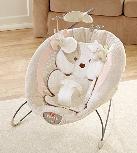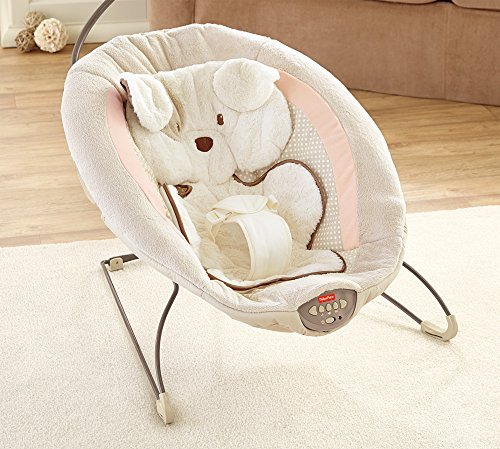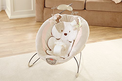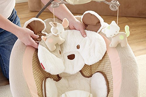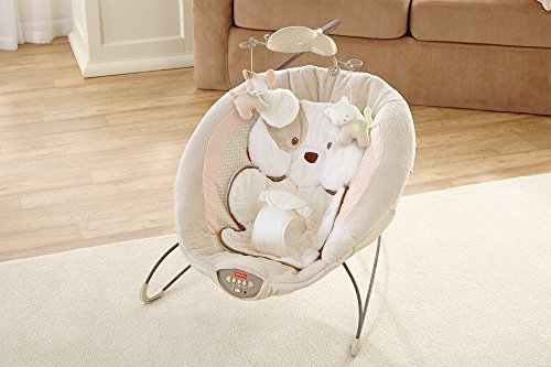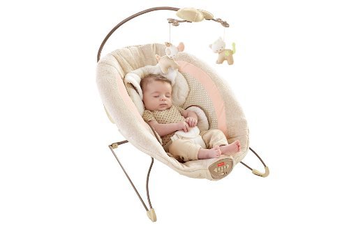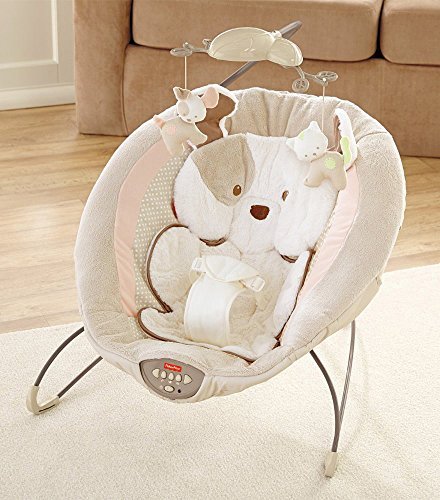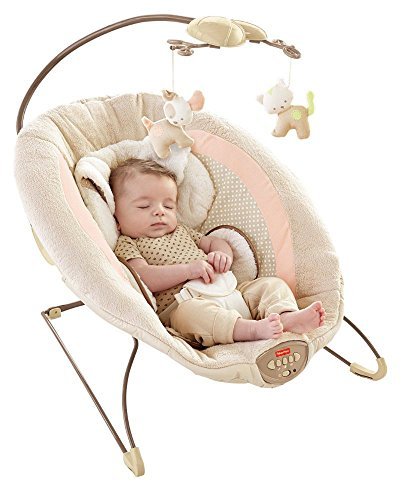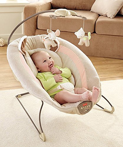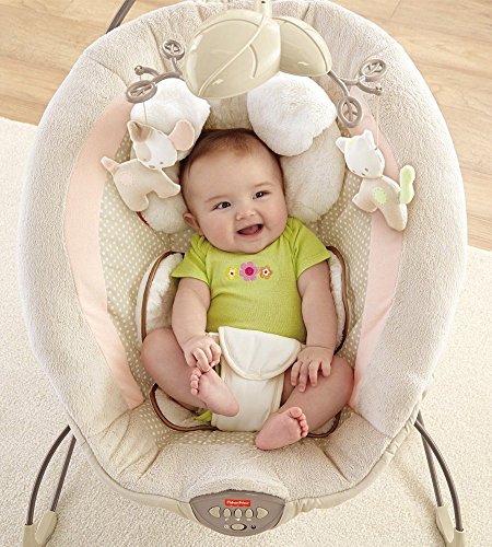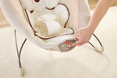 Sweet dreams become a reality when baby snuggles into this plush, deluxe bouncer seat. Soothe-till-you-snooze features include a deep seat with calming vibrations, cozy fabrics, a plush insert and soft head support. Cute overhead pals help make this the perfect spot for your little one to relax or play. Includes up to 20 minutes of music and nature sounds.