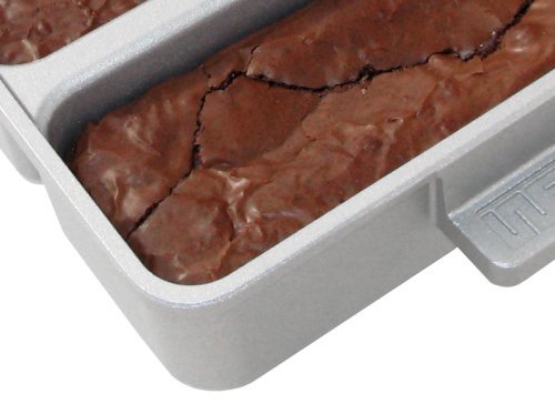 We think the best brownies have moist centers, a paper thin crackly crust, and lots of chewy edges. If you agree, you’ll love the Edge Brownie Pan – it’s the only gourmet brownie pan that adds two chewy edges to every brownie! The award-winning design also improves baking performance by circulating heat evenly to the pan’s middle, where food typically takes longer to bake. The Edge Brownie Pan has a single baking chamber that allows brownie batter to settle evenly, and the 9″ x 12″ size is a perfect fit for box mixes, as well as most recipes for 9″ x 9″ and 9″ x 13″ conventional pans. A durable nonstick coating makes it easy to clean, and the recessed handles are an easy grab when the pan is turned upside down. Widely acclaimed for its innovation and quality since its launch in 2006, the Edge Brownie Pan has quickly become a best-seller – and has garnered rave reviews from bakers everywhere. The Edge Brownie Pan is 100% made in the USA, and each pan comes complete with a flexible nylon spatula and a brownie recipes insert.