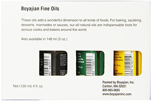Boyajian Mini Olive Oil Set: garlic oil , basil oil, lemon pepper oil, and roasted chili oil