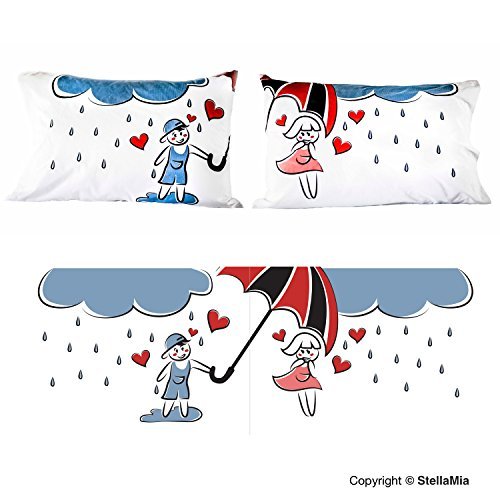 StellaMia Raining Love His and Hers Pillowcases | Ideal Anniversary, Wedding, Engagement & Valentines Gift for Couples | Fits Standard & Queen Size Pillows | 2 Pillow Covers | 30 in. x 20 in.