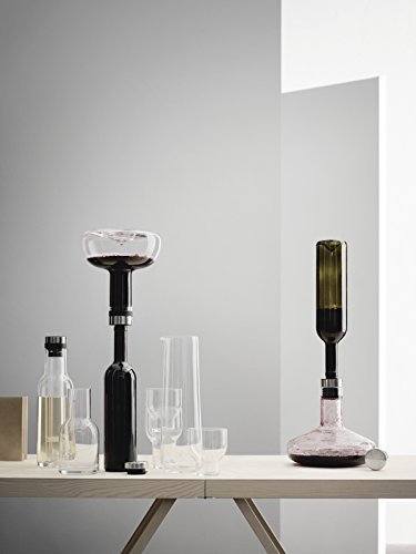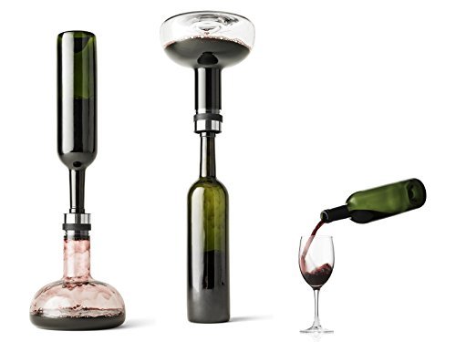 This elegantly designed carafe aerates your wine in one easy step. Simply press the decanter onto the top of an opened bottle of wine and flip it over so that the wine pours into the decanter. You can serve the wine from the decanter, or flip it back over once it’s done and pour the aerated wine back into the bottle and serve from the original bottle.