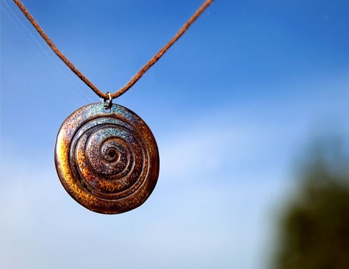 The spiral is perhaps the most ancient of all artistic symbols, originating before the Bronze Age. In Incan, Celtic, Aboriginal and other historic cultures the spiral represents continuation, a sense of the infinite. An original design by Jack Biesek. Each pendant is 1 3/8″ in diameter and weighs 6 grams. From War to Peace turns weapons meant to destroy us into art meant to restore us, swords into plowshares, bombs into beauty, hate into love, & war into peace. We recycle copper from disarmed nuclear weapon systems to create a remarkable alloy called Peace BronzeTM, from which we cast stunning jewelry and art for those who share our commitment to a world without war.