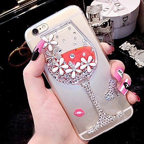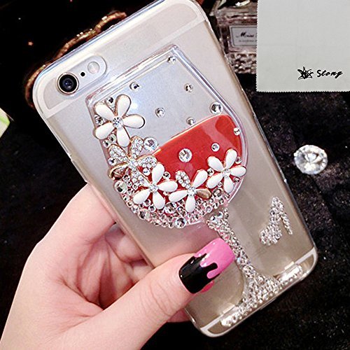 STONG Luxury Glitter Shiny 3D Colorful Diamond Crystal Flowing Colorful Liquid Glass Clear Back Soft Cover Case For Iphone (Red Wine, iphone 6 plus)