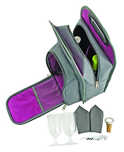 Our insulated Metro Two-Bottle Tote fits plenty of food and two wine bottles, keeping the contents cold for hours. In the side pocket you’ll find a corkscrew, bottle stopper, wine glasses and napkins. Your perfect picnic is all in one bag. It all includes 2 acrylic 9 oz wine glasses, 2 napkins, 1 white Truetap corkscrew & 1 bottle stopper. Each bag fits 2 standard bottles of wine. It is also built with insulated waterproof polyester for keeping those drinks cool.