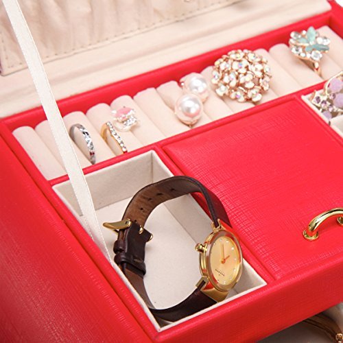 Humanized Design Details: Lid pad to prevent jewelries sliding out. Tray can be taken out to create a deeper drawer or leave the tray in..Removable divider.Watch pillow. Solid strap for carrying for travel. Please check picture 3 for details.