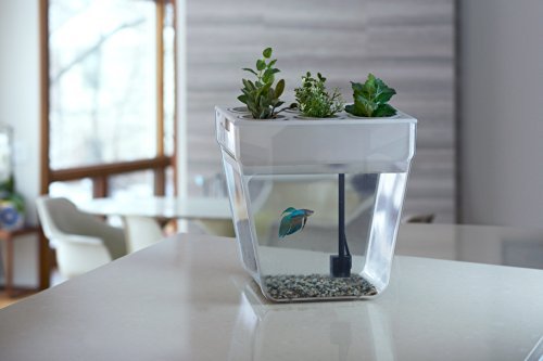 Bring the garden inside with the Back to the Roots Water Garden. This mini aquaponic tank is a closed-loop ecosystem – the betta fish waste fertilizes the plants on top, and the plants filter and clean the water for your fish – not your average betta fish bowl!