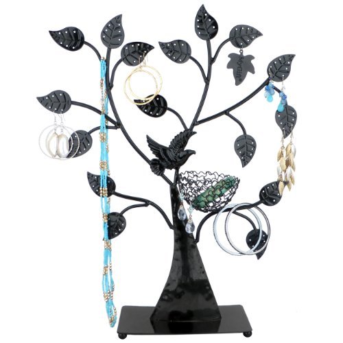 Crafted leaves hold up to 48 pairs earrings while the 16 branches organize your necklace and bracelets.