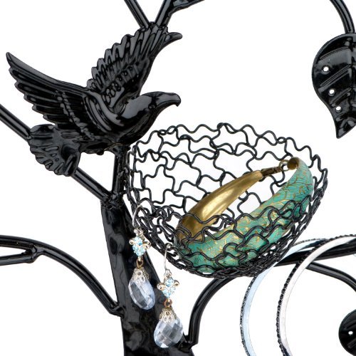 Hanging your earrings, bracelets and necklace on the branches of this antique tree tower for easy access and a beautiful presentation. A sorrow bird guards your precious jewelries in the nest as intently as she’d protect her eggs. The crafted leaves hold up to 48 pairs earrings while the 16 branches organize your necklace and bracelets. Artistic wired bird nest gives variety option holding or displaying your jewelry rings, earrings or other small items. Organize your jewelries and have something fabulous to look at too! As decorative as it is convenient. This MyGift jewelry hanger is a great gift idea for Valentine’s Day, Mother’s Day, Thanksgiving, Christmas or any occasion. Color: Bronze