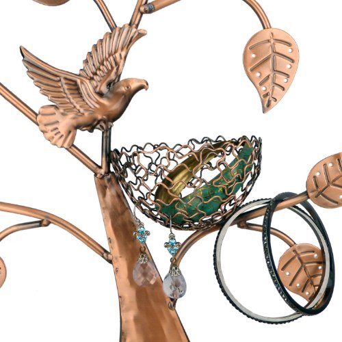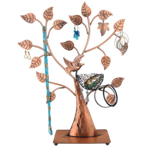 Hanging your earrings, bracelets and necklace on the branches of this antique tree tower for easy access and a beautiful presentation. A sorrow bird guards your precious jewelries in the nest as intently as she’d protect her eggs. The crafted leaves hold up to 48 pairs earrings while the 16 branches organize your necklace and bracelets. Artistic wired bird nest gives variety option holding or displaying your jewelry rings, earrings or other small items. Organize your jewelries and have something fabulous to look at too! As decorative as it is convenient. This MyGift jewelry hanger is a great gift idea for Valentine’s Day, Mother’s Day, Thanksgiving, Christmas or any occasion. Color: Bronze