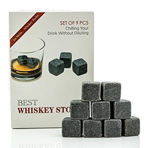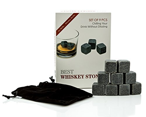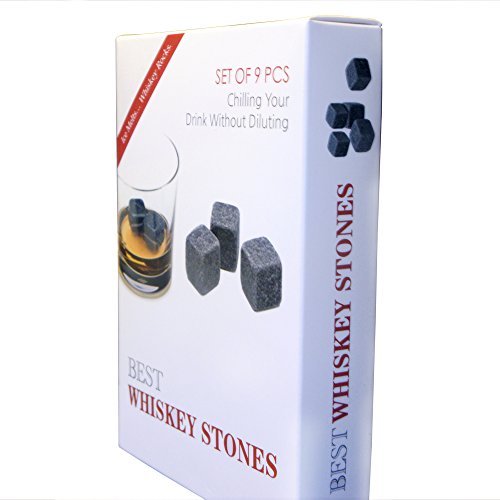 COOL DRINKS WITH NO DILUTION In addition to barware, set includes 9 FDA-approved food safe whiskey stones for chilling cocktails. Storage bag also included