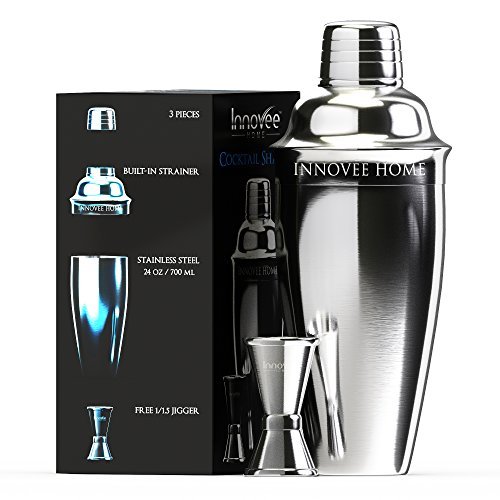 That’s why you need the Innovee Home Stainless Steel Cocktail Shaker. Featuring a built-in strainer, a 24 ounce shaker and a 1 & ½ oz jigger, this cocktail shaker set is just what you need to produce drinks your guests will love.