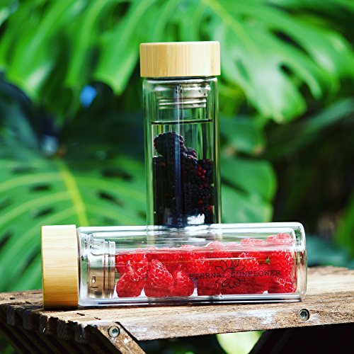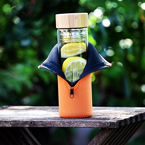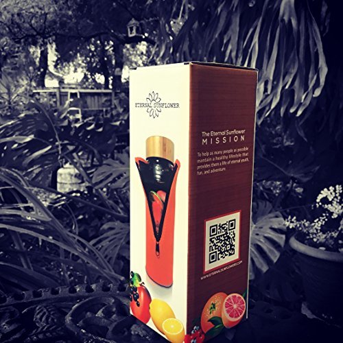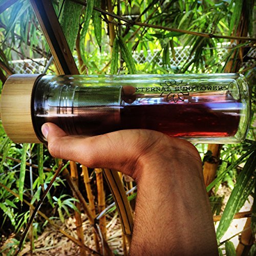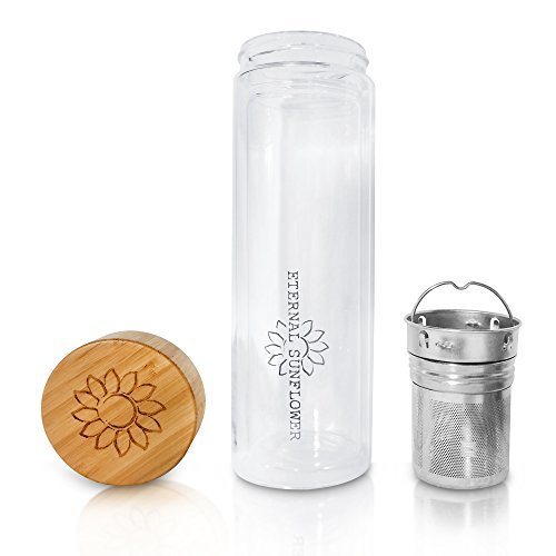Eternal Sunflower Glass Water Bottle Tumbler Brewer Infuser Coffee Fruits Herbs Insulated Sleeve Hot Cold Strainer.