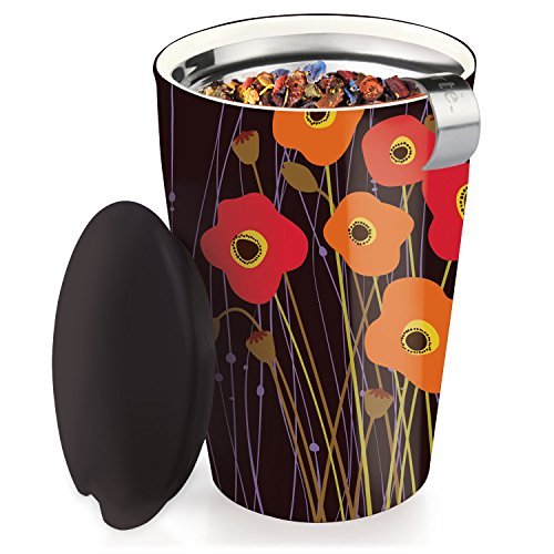 Tea Forte Kati Cup Ceramic Tea Infuser Cup with Infuser Basket and Lid for Steeping, Poppy Fields