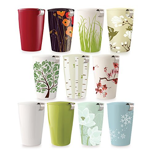 TEA CUP WITH INFUSER includes a double-wall ceramic tumbler, stainless steel loose leaf tea infuser basket and a lid STEEP THE PERFECT CUP of tea using your favorite loose leaf tea, use the lid to keep your tea hot while steeping, then rest the strainer basket on the lid to catch drips EXTRA FINE TEA INFUSER made from stainless steel is sturdy, easy to clean and keeps tea leaves inside the basket with no residue left in your cup