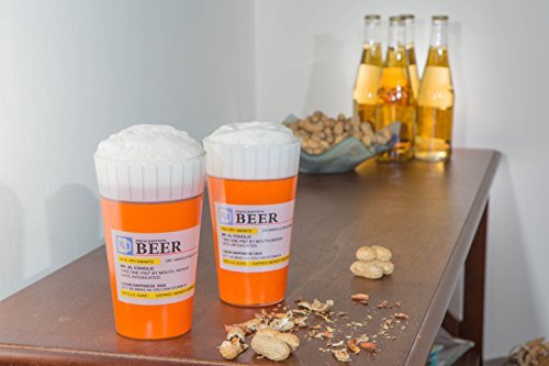 Prescription Pint glass set of 2 is just what the doctor ordered. Each glass looks like a prescription bottle with label instructing to drink and repeat. Hand washing recommended.