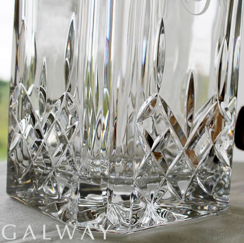 Gift a piece of Ireland with this Beautifully Handcrafted Personalised Irish Galway Crystal Whiskey Decanter & 4 Glasses Tray Set. Personalize this gift that will last a lifetime and be treasured for generations to come. This Beautiful Irish Galway Crystal Decanter Tray Set includes an Irish Crystal Whiskey Decanter and 4 matching Whiskey Glasses presented on a wooden tray. Personalize up to 4 lines with up to 15 characters per line- just email us the details after you order and we can take care of the rest. This stunning & stylish collection of Irish crystal is presented in a Galway Crystal Gift box. Enjoy a Drink with friends and family with Ireland’s famous Galway Irish Crystal. Made in Ireland & shipped directly from Ireland, this complete piece measures 9.5 x 16 x 10.5 inches. Galway Irish Crystal has long been one of the world’s best known and loved brands of traditionally crafted Crystal. Nestled in the heart of the West of Ireland, on the shores of Galway Bay, Galway Crystal is steeped in the rich and diverse heritage of this unique hinterland. This collection of crystal makes an Ideal Wedding Present, Anniversary Gift, Birthday or for a New Home, a must have for every whiskey connoisseur!