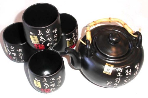 This high quality porcelain tea set is the perfect companion for enjoying tea. * On the body of the Japanese tea set is calligraphy in Kanji. * The tea set includes a teapot (capacity 27 fl oz) and 4 teacups (holds 7oz) *