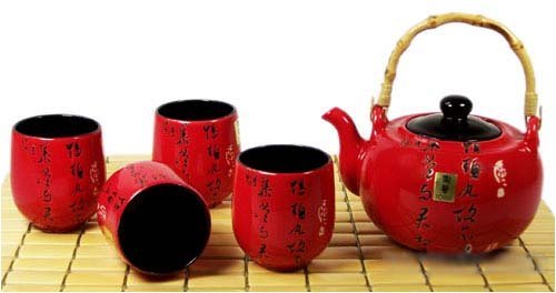 This beautiful high quality porcelain tea set come with one teapot and 4 teacups this high quality porcelain tea set is the perfect companion for enjoying tea. On the body of the Japanese tea set is calligraphy in kanji. The tea set includes a teapot (capacity 27 FL oz.) and 4 teacups (holds 7oz).