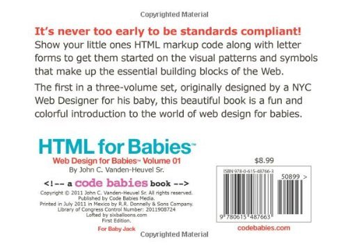 It’s never too early to be standards compliant! Show your little ones HTML markup code along with letter forms to get them started on the visual patterns and symbols that make up the essential building blocks of the Web. The first in a three-volume set, originally designed by a NYC Web Designer for his baby, this beautiful book is a fun and colorful introduction to the world of web design for babies.