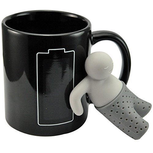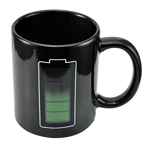 UCEC Color Changing Heat Sensitive Mug – Coffee, MilK, Tea Cup- Free Stainless Steel Tea Infuser Changed colors with heated water. Little battery thing will become green image. When add hot liquid.the cup will restore original when cooling.Mug Changed colors with heated water. Little cup thing will become fuchsia image. When add liquid.t he cup will restore original when cooling.