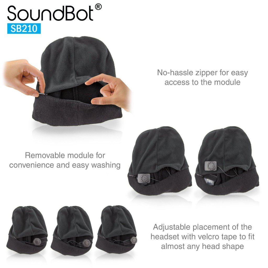 SoundBot SB210 Stereo Bluetooth 4.1 Wireless Musical Headset Beanie for Music Streaming & Hands-Free Calling w/ 5hrs Music Playback, 8Hrs Talk Time, 60Hrs Standby Time