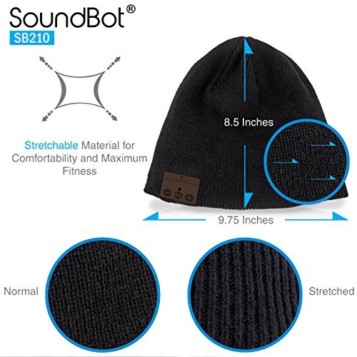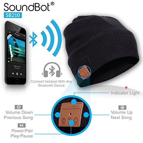 SoundBot SB210 Stereo Bluetooth 4.1 Wireless Musical Headset Beanie for Music Streaming & Hands-Free Calling w/ 5hrs Music Playback, 8Hrs Talk Time, 60Hrs Standby Time