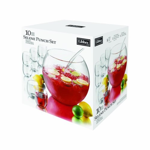 The Libbey Selene 10-piece Punch Bowl Set draws admiring eyes to your beverage. Eight rounded punch glasses complement the graceful ladle and, of course, the gorgeous clear bowl. Dazzle your loved ones at your next get-together, where the bowl can stand out or blend in with a full table spread.